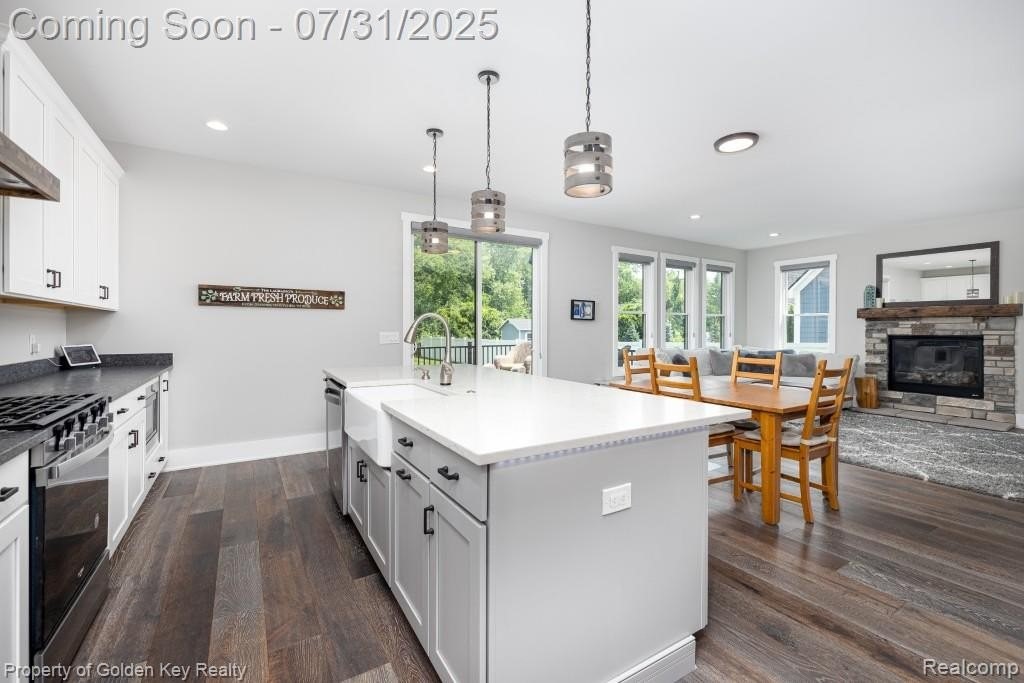 WOW WHAT A DEAL!!! Tucked away on a quiet, low-traffic street, this beautifully crafted modern farmhouse perfectly blends timeless elegance with everyday comfort. The stunning exterior features classic gray siding, crisp white trim, and a welcoming front porchall surrounded by lush landscaping and a truly exceptional private fenced backyard. A spacious three-car garage with a 240V EV charger and a long, paved driveway provides ample parking for family and guests alike. Inside, the open-concept layout showcases rich hardwood floors, clean white walls, and an abundance of natural light streaming through oversized windows. The gourmet kitchen is a chefs dream, featuring white shaker cabinets, quartz countertops, stainless steel appliances, and a rustic wood vent hood. Just off the kitchen, the cozy living room centers around a stone fireplaceperfect for relaxing evenings at home. Designed with modern living in mind, the home offers four generously sized bedrooms, a large mudroom off the garage entry, second-floor laundry, and a fabulous butlers pantry. The tall ceilings in the basement provide the perfect canvas for recreation space or additional storage. Retreat to the luxurious primary suite, where youll find heated bathroom floors, dual vanities, a freestanding soaking tub, and a glass-enclosed tile showeryour own personal spa experience. Step outside to your private backyard oasis. Mature trees create a serene, park-like setting, while the expansive Trex deckplumbed for a gas BBQmakes outdoor living and entertaining effortless and low-maintenance. Located within walking distance to both the elementary and high schools, and just minutes from vibrant downtown Plymouthknown for its boutique shopping, dining, parks, and year-round eventsthis home offers the best of both lifestyle and location. Whether you're raising a family, entertaining friends, or embracing an active lifestyle, this residence provides it allwith a touch of luxury.